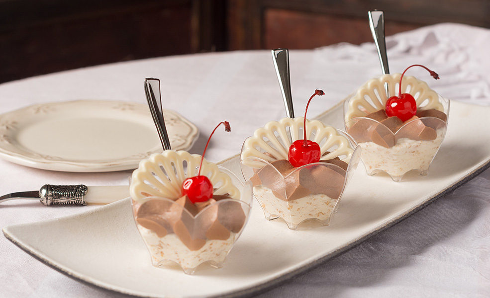 Blat de cacao însiropat, cremă de ciocolată cu vișine în alcool, […]